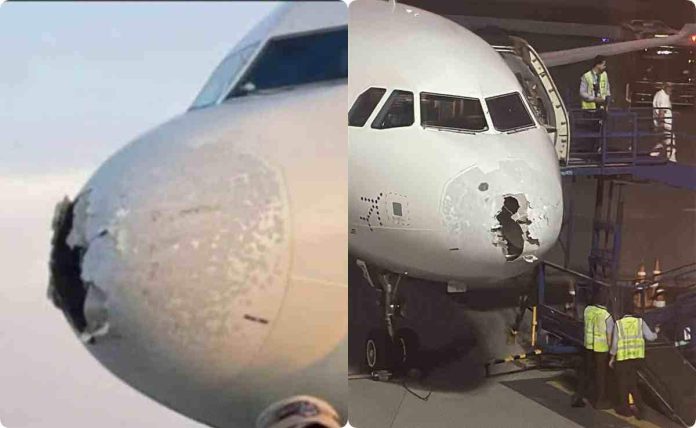 दिल्लीहून श्रीनगरला जाणा Ed ्या इंडिगो फ्लाइट E ई २१42२ च्या निवेदनात एअरलाइन्सने एका निवेदनात म्हटले आहे की वाटेत अचानक गारपीट झाली. फ्लाइट आणि केबिन क्रू प्रोटोकॉलच्या मागे गेले आणि विमान सुरक्षितपणे श्रीनगरमध्ये उतरले.