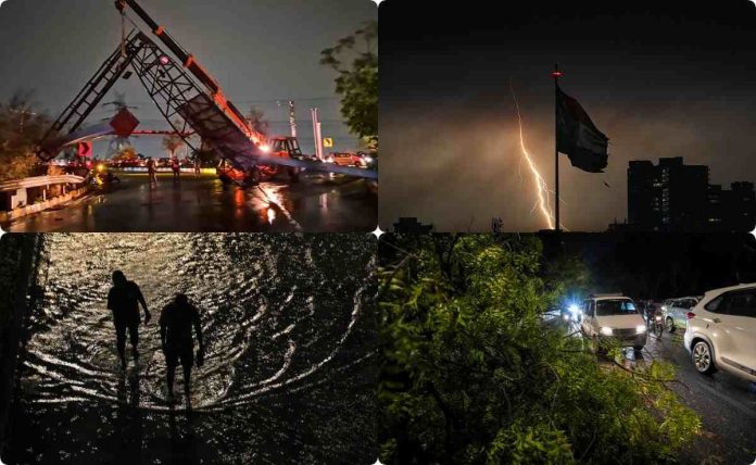 दिल्ली-एनसीआरमध्ये पाऊस आणि गडगडाटीमुळे लोधी रोडवर इलेक्ट्रिक पोल पडला.